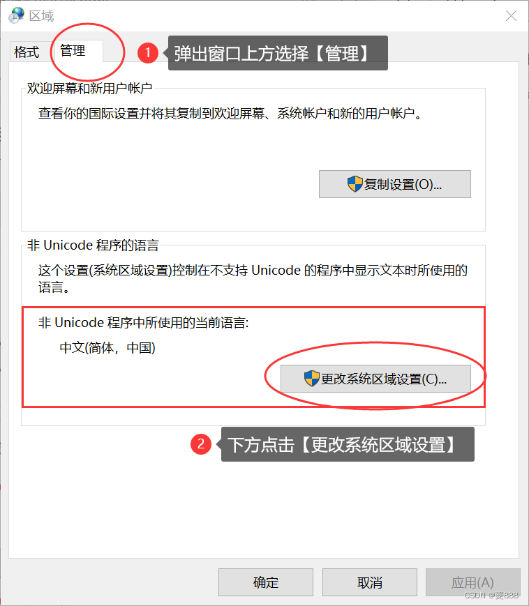 选择并确定当前的非UNICODE程序的语言为中文简体