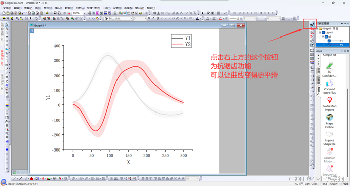 4.点击右上方的按钮,为抗锯齿功能,可以让曲线变得平滑