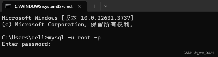 在弹出的窗口中,输入mysql -u root -p;再回车;之后只需要输入root用户的密码就行。结果如下