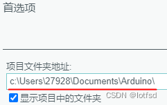 解决办法是把“项目文件夹地址”改回默认的(c:\Users\27928\Documents\Arduino\)如下图所示: