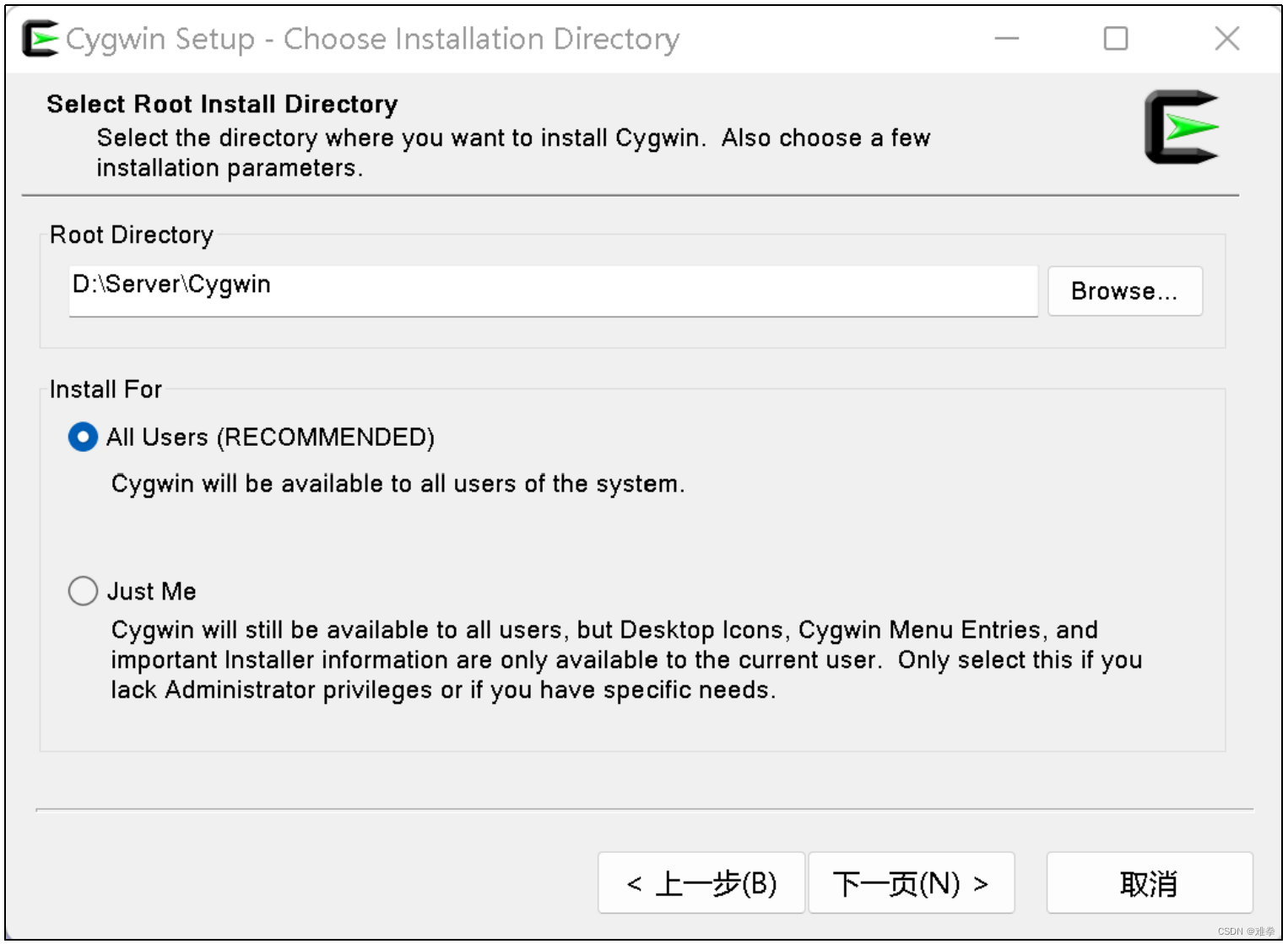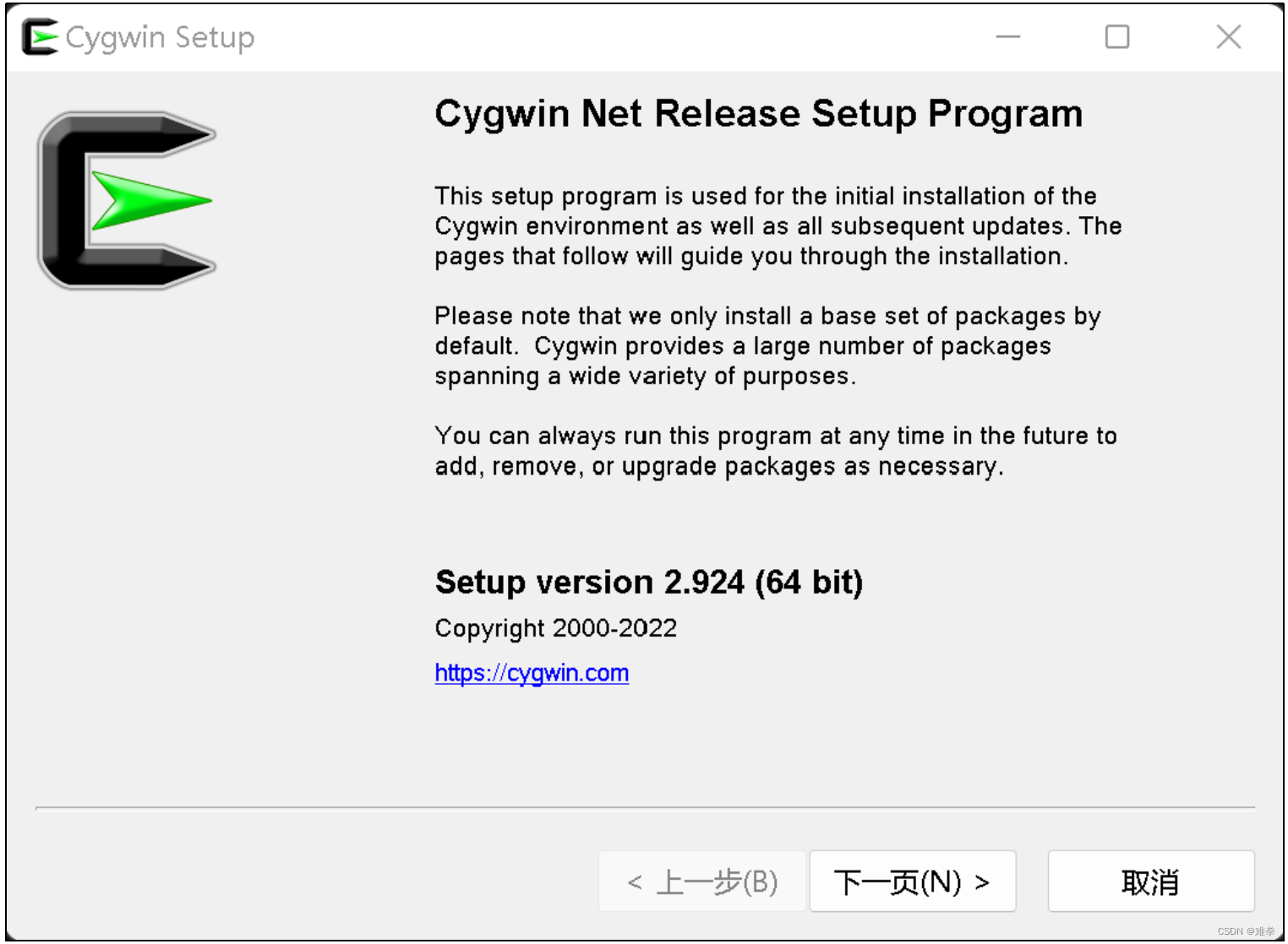 从Cygwin中文站点下载安装包setup-x86_64.exe双击开始安装: