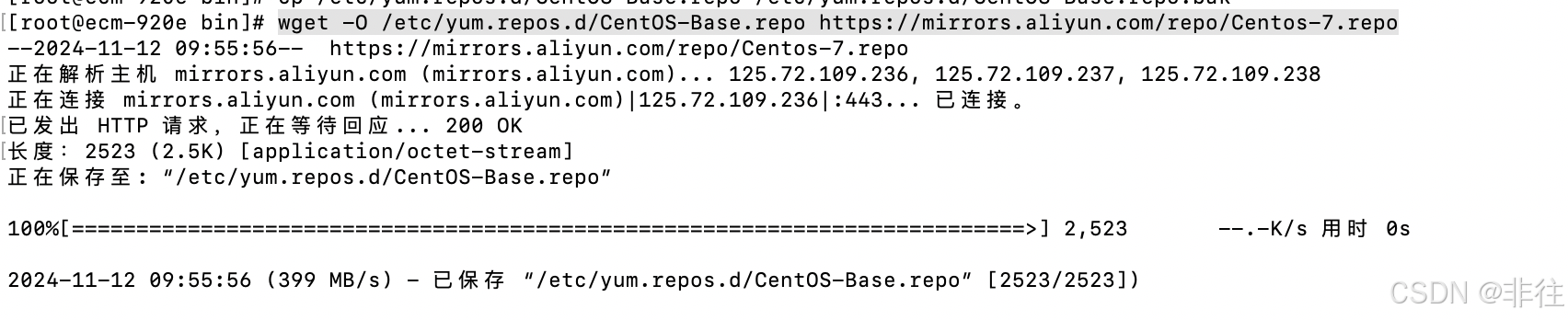 wget -O /etc/yum.repos.d/CentOS-Base.repo https://mirrors.aliyun.com/repo/Centos-7.repo