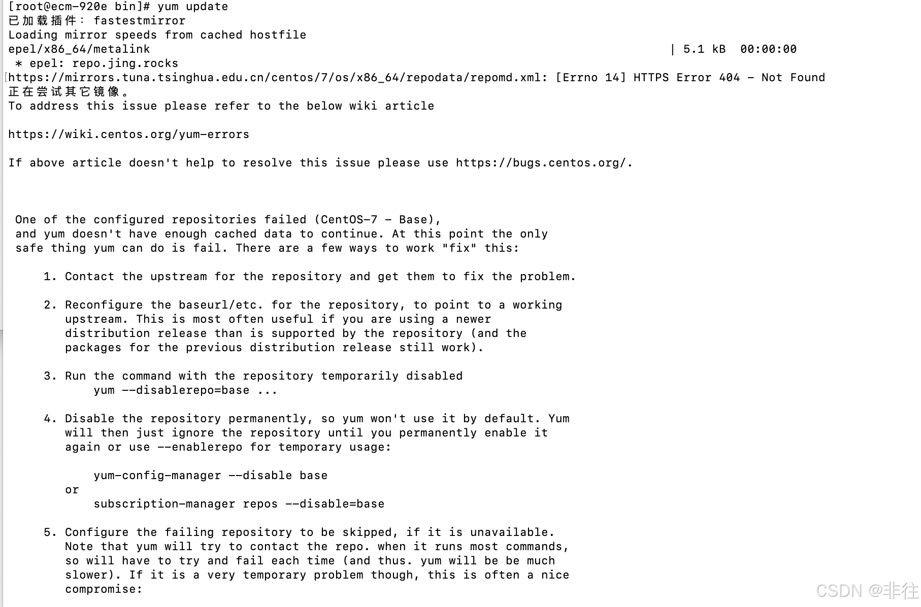 [Centos7 yum源报错] repodata/repomd.xml: [Errno 14] HTTP Error 404 -[Errno 256] No more mirrors to try.