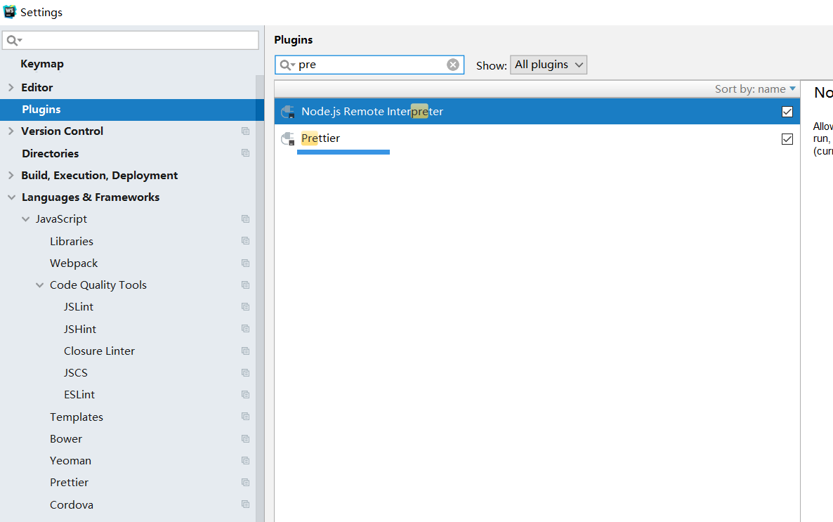 一.webstorm 设置界面=>Editor=>Code Style可以设置各种文件类型的格式化规则设置默认为单引号二.webstorm中配置prettier 1.安装prettier npm i --save-dev prettier 或者 npm i -g prettier 或者 下载插件就行 2.先配置prettier,然后在文件中右键就出现prettier格