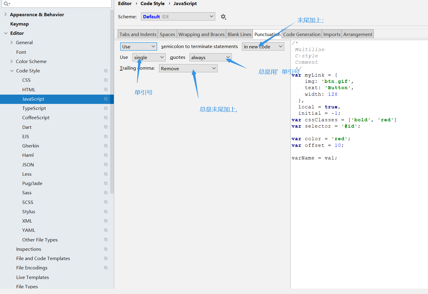 一.webstorm 设置界面=>Editor=>Code Style