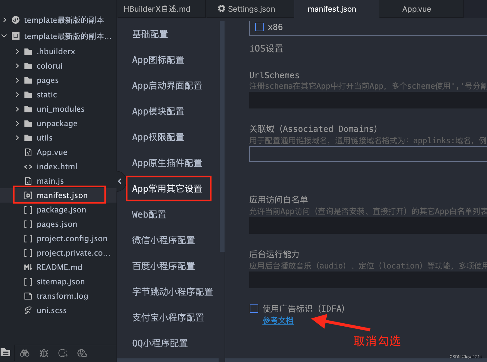 在 manifest.json 文件的 “App常用其它设置” 中取消勾选(注意HBuilder X 2.4以上为默认勾选)