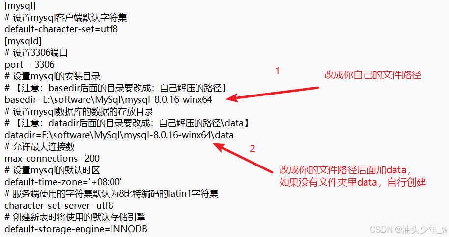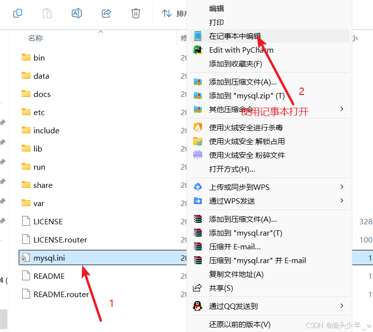 2.进入解压的mysql的文件夹,修改 mysql.ini 文件,改路径