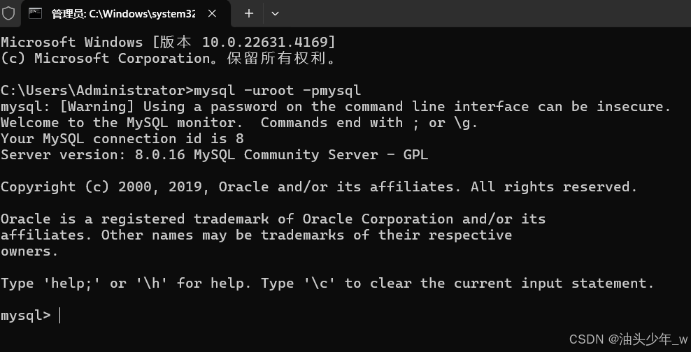 windows+r键打开,输入cmd输入mysql#注意,mysql是我的密码,你需要输入自己的密码。
