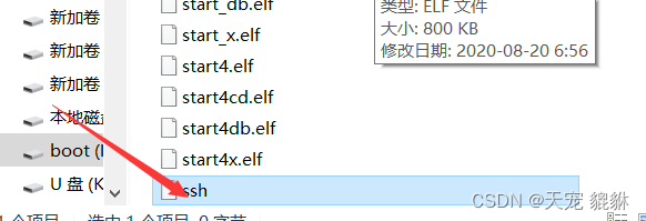 打开树莓派镜像系统U盘,直接在系统文件中建立ssh文件,无后缀名
