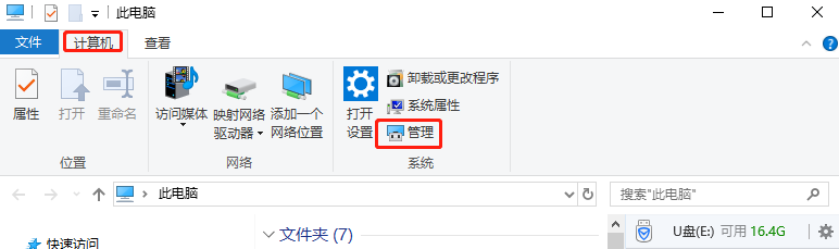 U盘读不出来还有可能是电脑的原因,这时候直接进入计算机【管理】中查看;