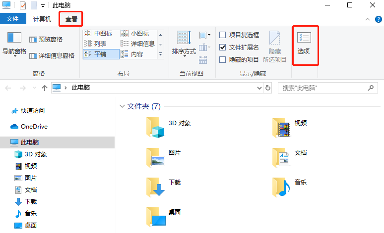 这个时候,将U盘插入电脑,打开【我的电脑】-【查看】-【选项】;