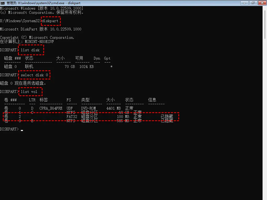 如果Windows自动修复不起作用,您可以尝试使用 Diskpart手动修复此问题。