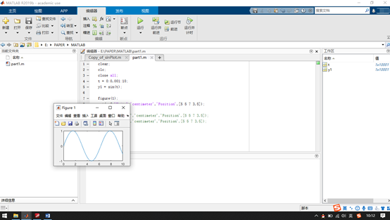 其中'Units','centimeter' 用来定义单位;'Position',[5 5 7 3.5]用来定义位置。