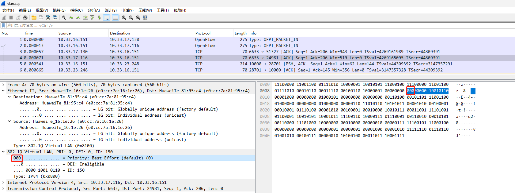 取值为0x8100时表示IEEE 802.1Q的VLAN数据帧。如果不支持802.1Q的设备收到这样的帧,会将其丢弃。 各设备厂商可以自定义该字段的值。当邻居设备将TPID值配置为非0x8100时, 为了能够识别这样的报文,实现互通,必须在本设备上修改TPID值,确保和邻居设备的TPID值配置一致。 |