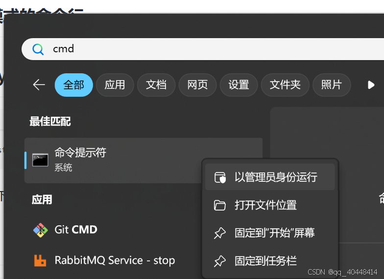 2.1 管理员身份打开cmd命令提示符;如果不是管理员身份运行,那么2.2和2.3不生效