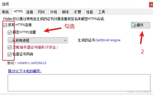 2.在https选项中勾选所有,并在操作里重置证书
