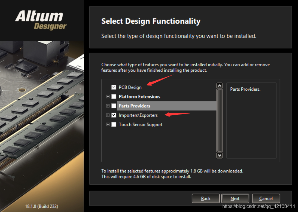 3、一般选择安装“PCB Design”、“Importers\Exporters”两项即可