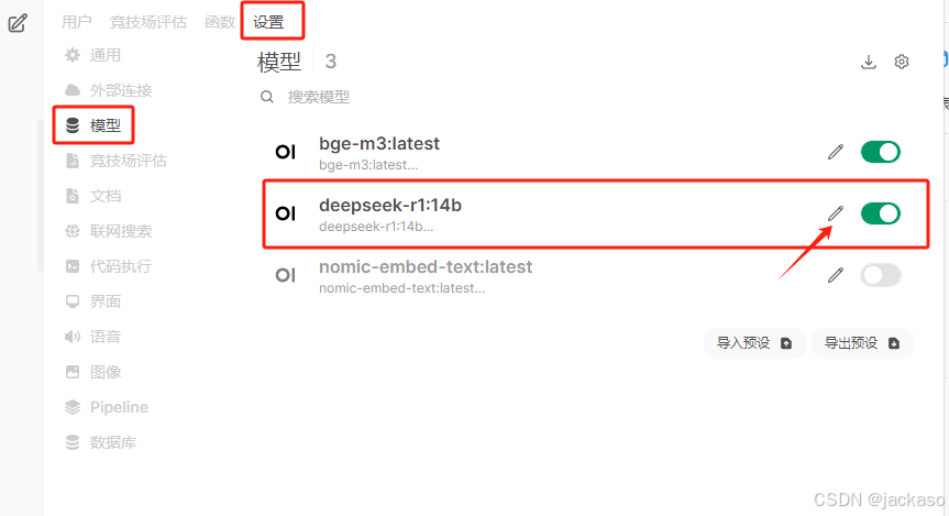 1、打开管理员面板设置栏,找到使用的“模型”选项,点击编辑