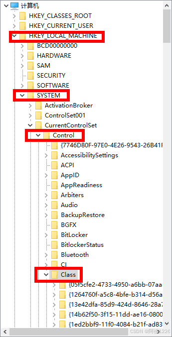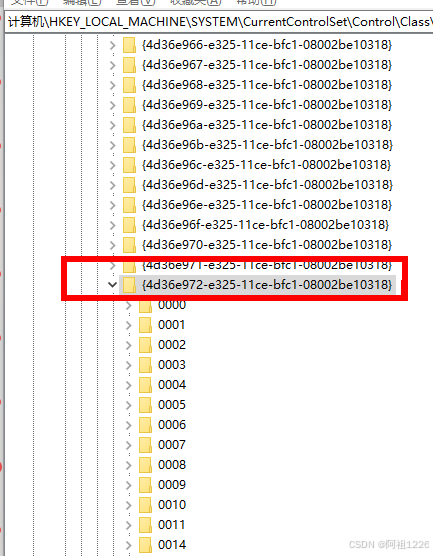 3.定位到以下:HKEY_LOCAL_MACHINE\SYSTEM\CurrentControlSet\ Control\Class \{4D36E972-E325-11CE-BFC1-08002BE10318}\