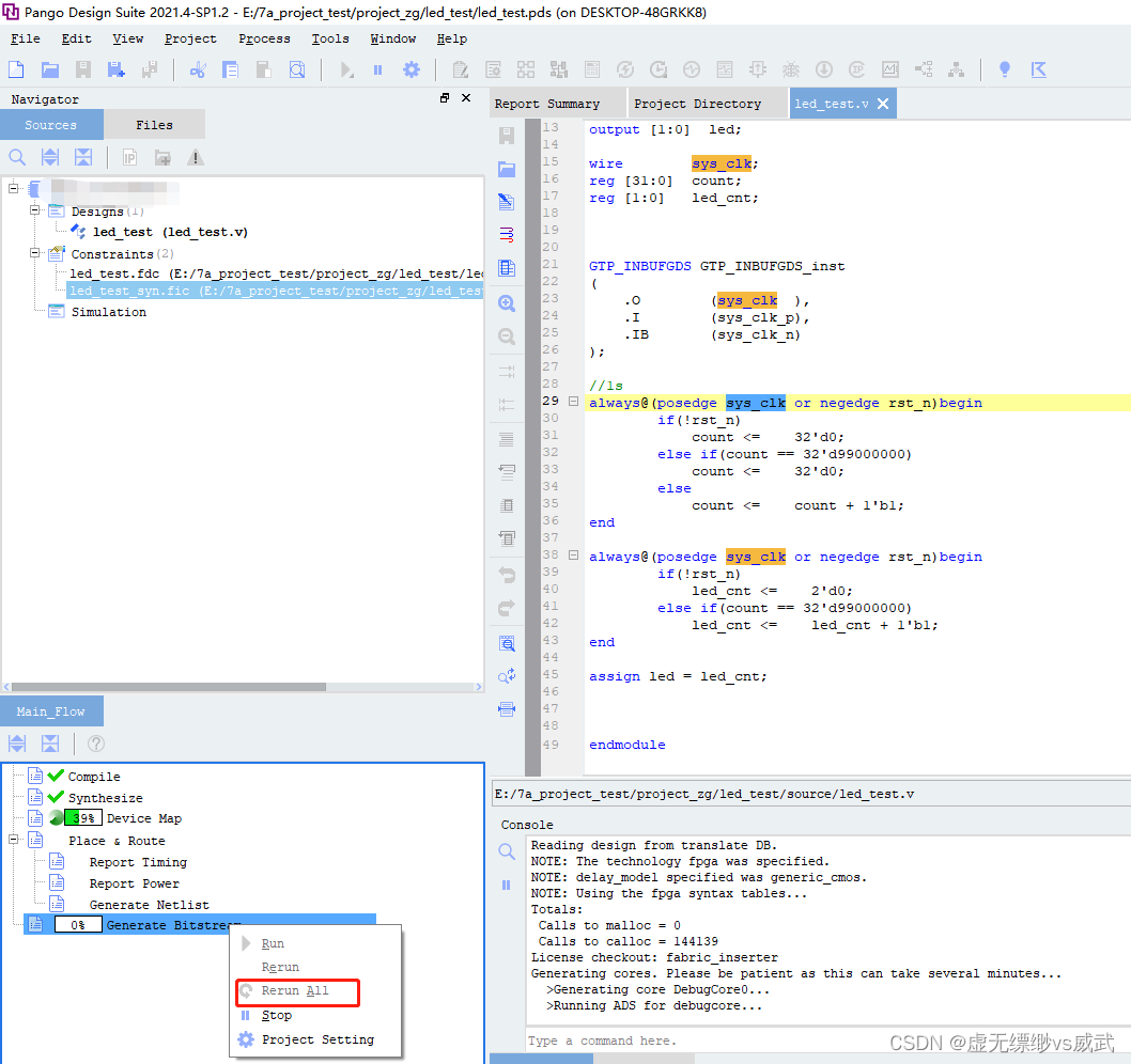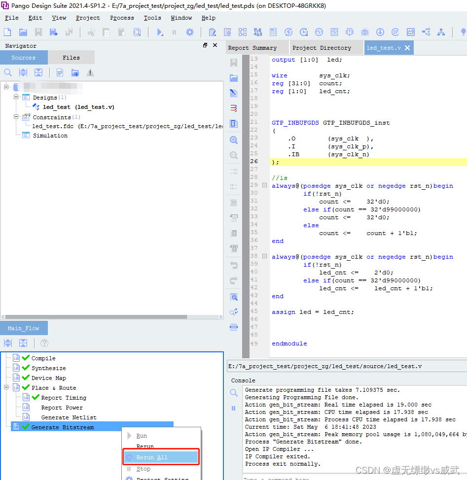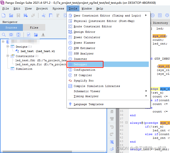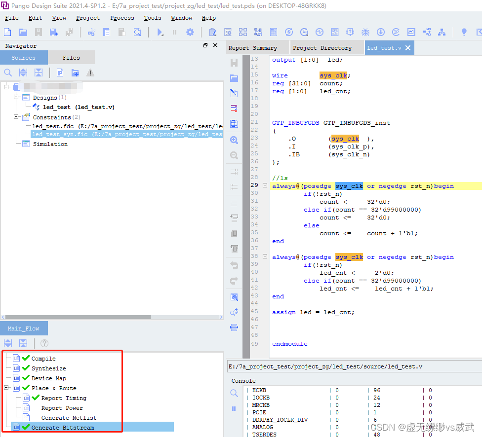 我们这里通过debug抓一个普通led工程的部分信号下面是代码,输入差分200M。