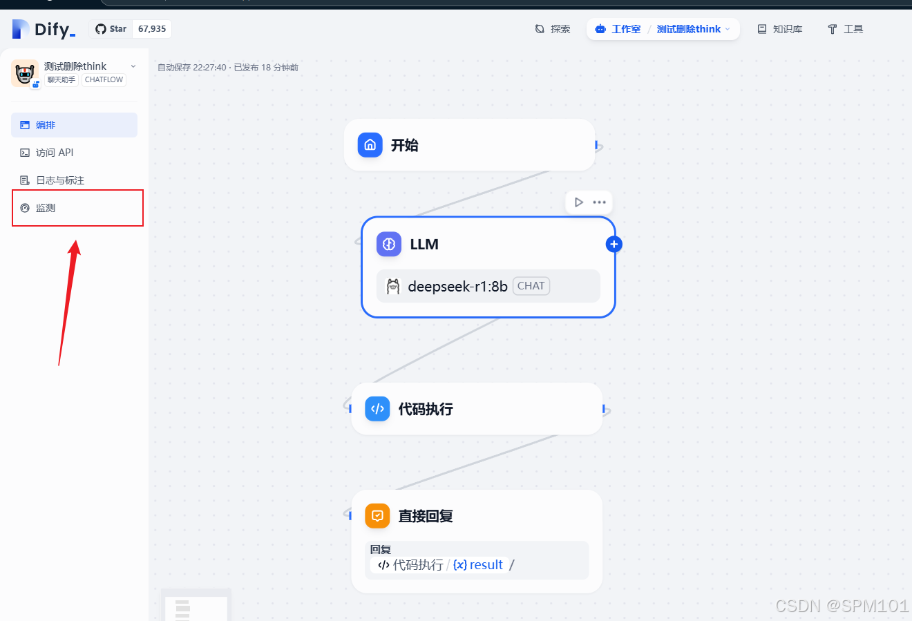 隐藏前:有下拉列表可以点击查看工作流。1.进入工作流选择”监测“隐藏后:下拉列表被隐藏。