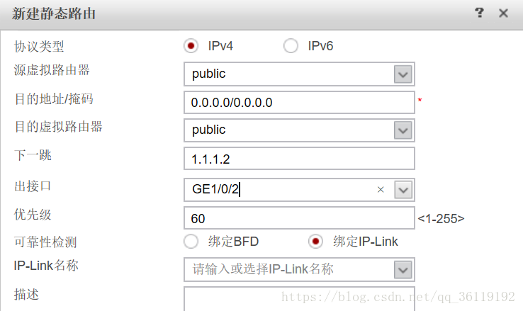 ip route-static 0.0.0.0 0.0.0.0 GigabitEthernet1/0/2 1.1.1.2