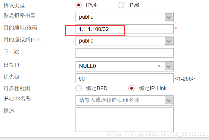 ip route-static 1.1.1.100 255.255.255.255 NULL0