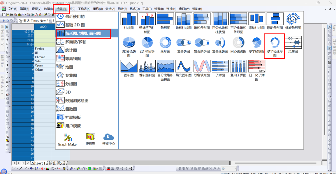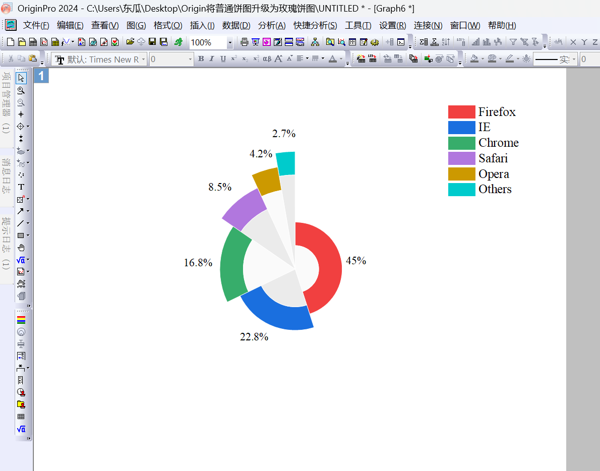 Origin将普通饼图升级为高级的玫瑰饼图或环状饼图