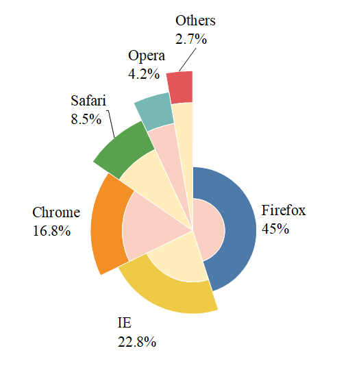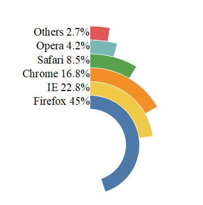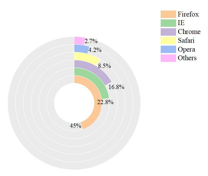 环状饼图是饼图变体,以不同的环状条形图为基准,主要用于展示数据的分布和比例关系。