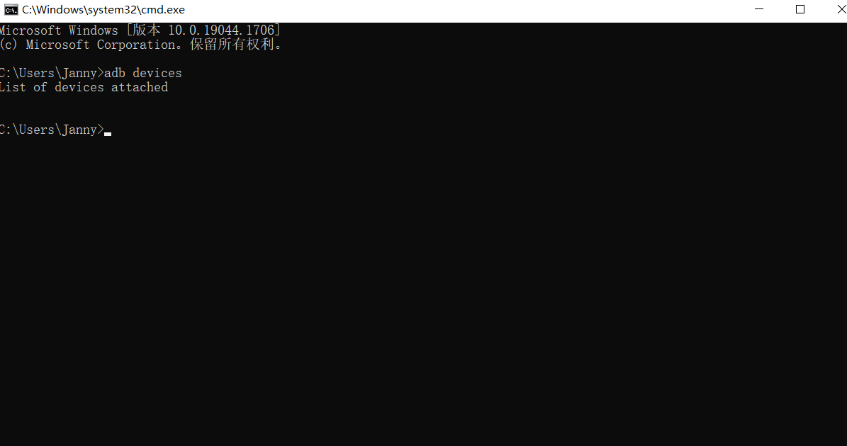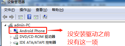 1.当我们使用adb命令去查看我们手机与电脑的连接情况时,出现以下情况,说明我们的电脑没有Android手机驱动程序