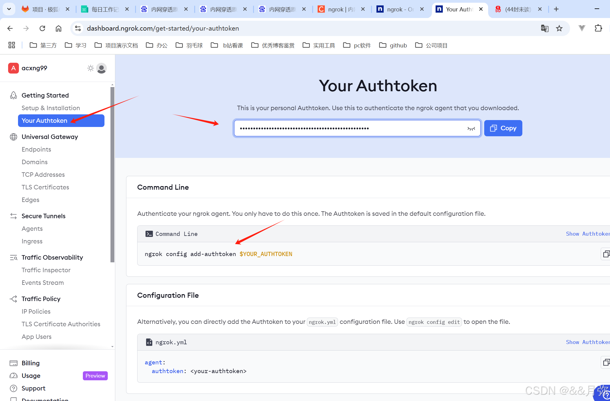 使用之前要配置token,这个token是注册ngrok得到的,所以想用先注册一下