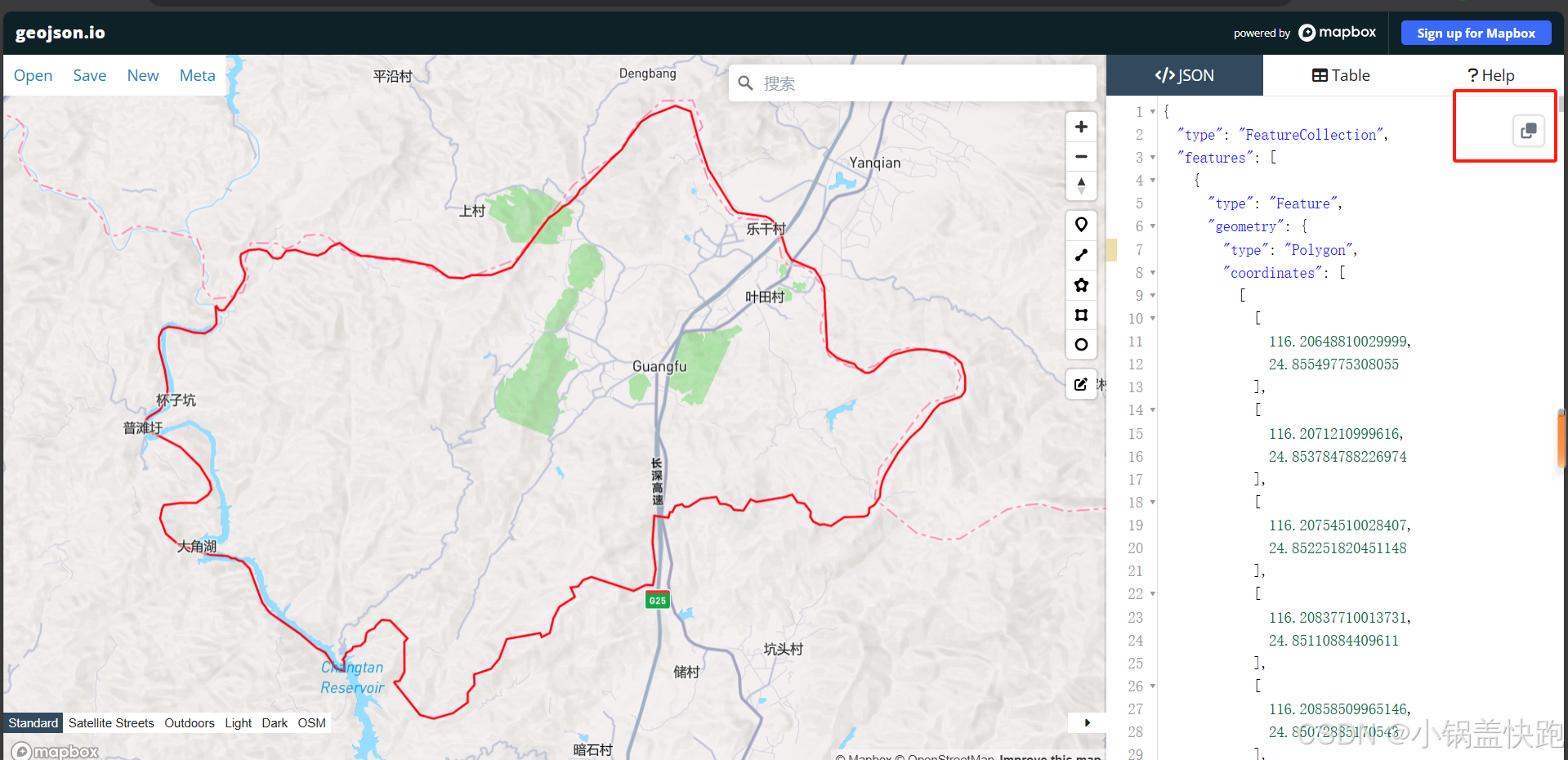 打开 geojson.io (可能有点慢,不要急),上把刚刚导出的kml文件导入进来