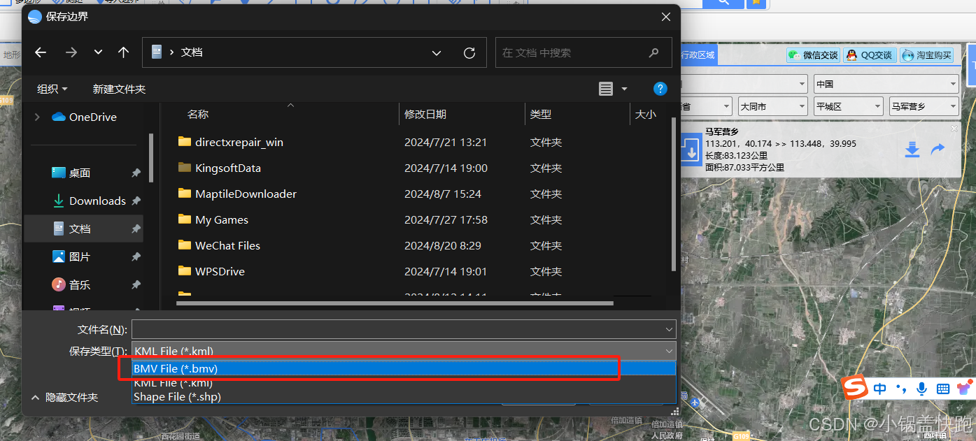 导出文件类型有三种,选择bmv类型。kml类型不开放了。