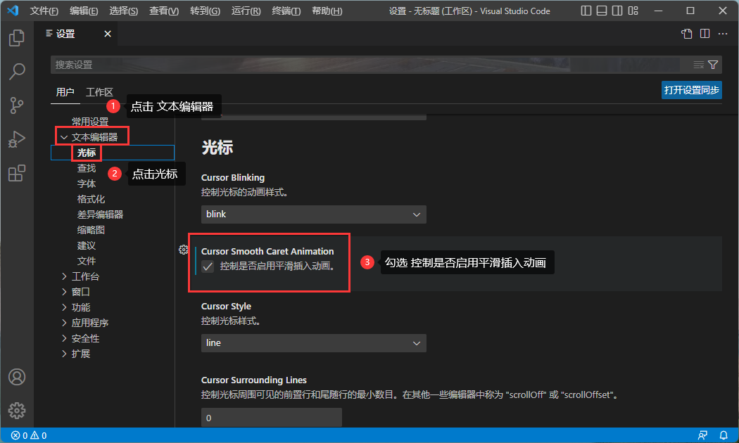 vscode设置平滑光标
