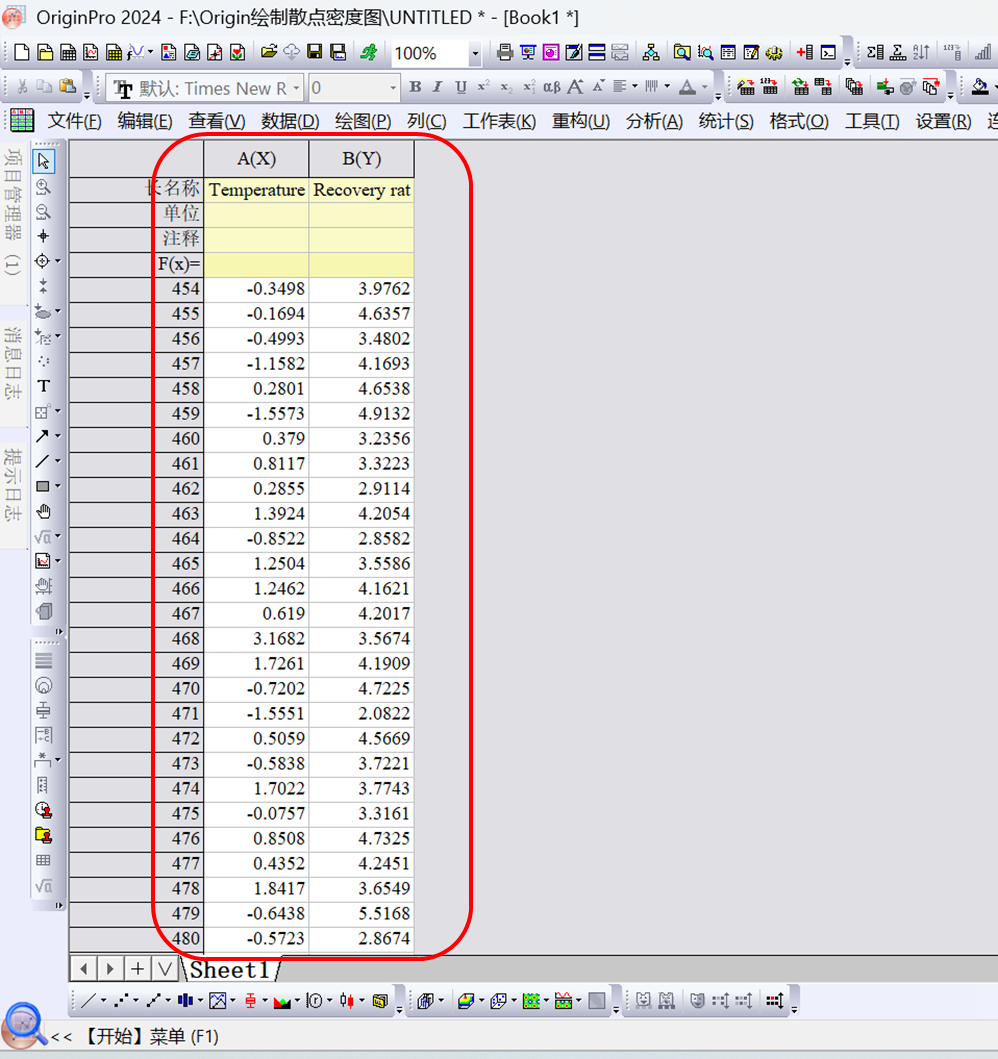 1.打开Origin软件,把数据导入到Origin软件中;