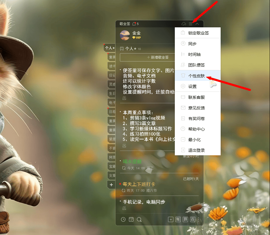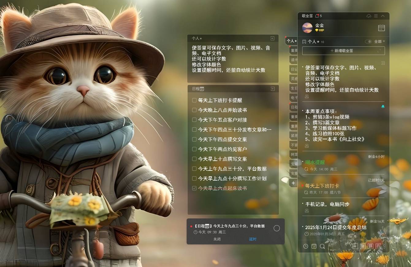 此外,每条便签、每个待办分类可以独立云游桌面显示(嵌入桌面)。