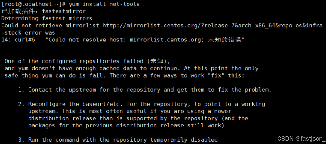 centos7在2024年6月30日结束,官方不再进行支持维护,官方的YUM源也下线了,下线的方式是使yum的域名不解析。所以现在需要配置国内的YUM源今天新建了个centos7的虚拟机发现yum无法正常使用当出现这个问题后首先想到了网络问题1.通过ip addr检查了一下网络接口发现没问题2.中手动配置了一下DNS也无法解决3.检查了一下虚拟机的网络设置也没问题4.ip route检查路由表发现