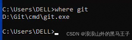 2.接下来输入where git,并找到Git所在文件夹的位置。如下所示: