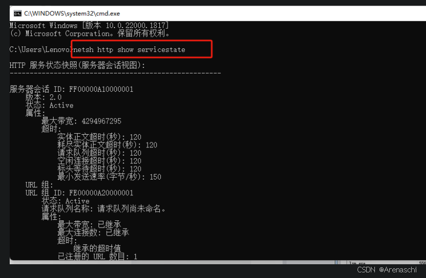 3.通过netsh http show servicestate 命令能找出是哪个应用程序在使用Http.sys