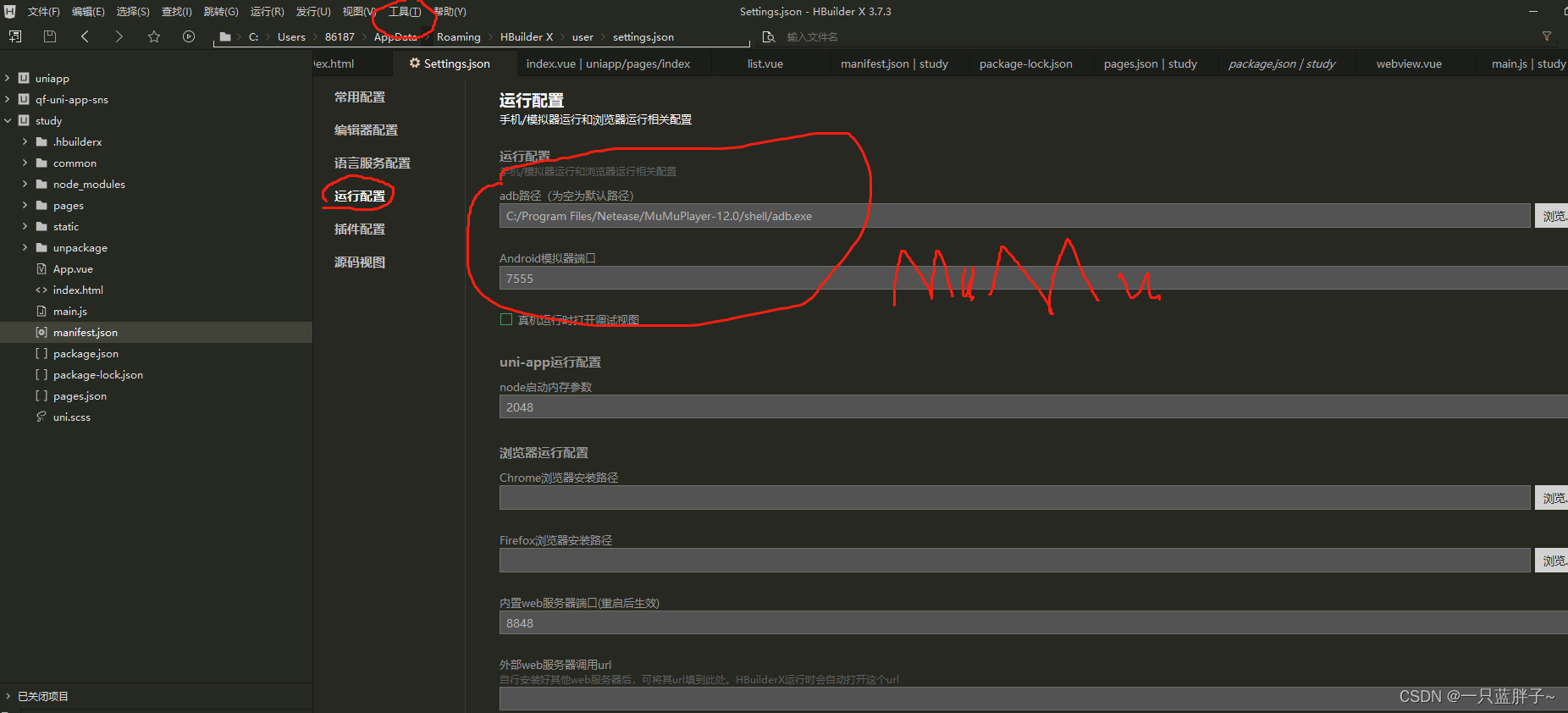 如何链接手机mumu模拟器测试——abd路径+7555(固定的)