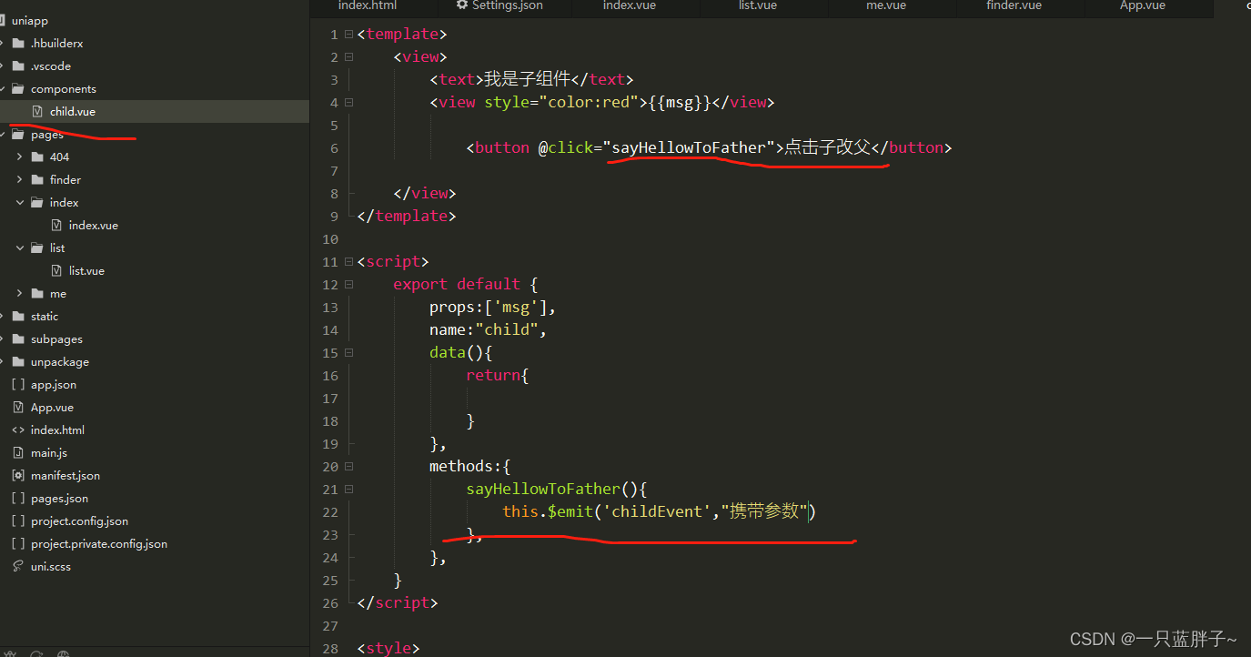 子组件用$emit发布父组件上的方法,间接让父组件自己改自己