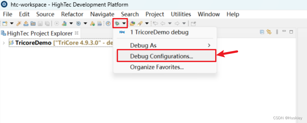 3、打开Hightec选择Debug中的Debug Configurations