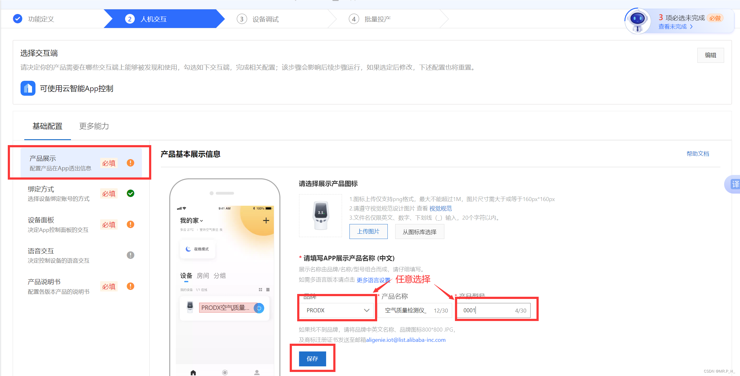 进入界面后,任意输入品牌与型号,点击保存。