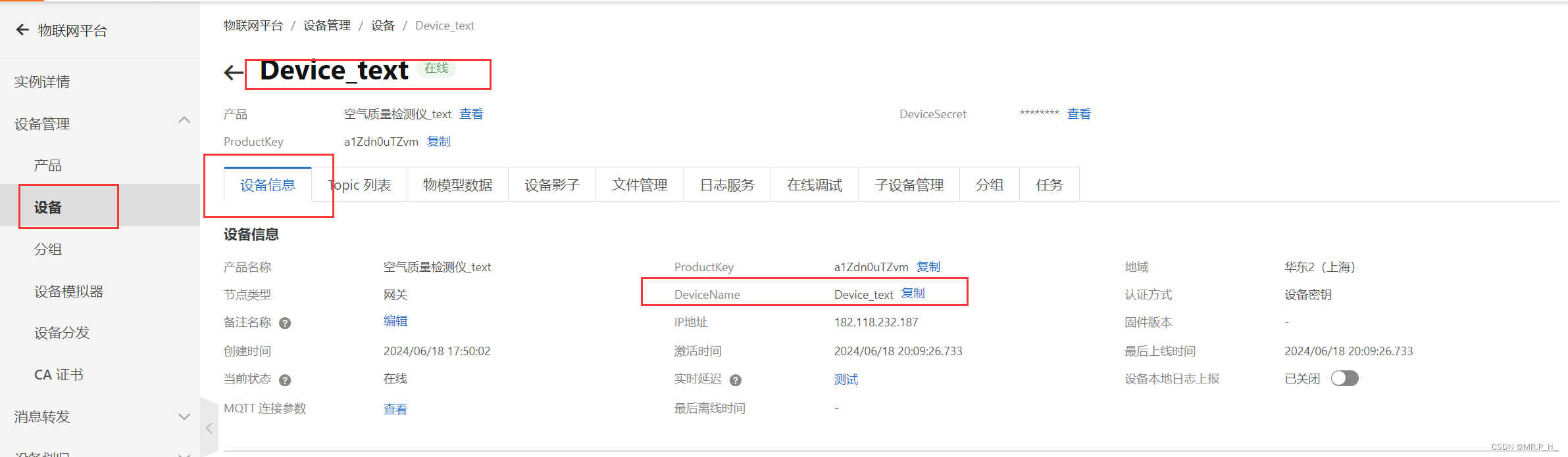 点击设备,找到对应的设备,点击查看,进入页面后找到MQTT 连接参数点击查看,一键复制当前信息到空白文档中,方便后面查看。