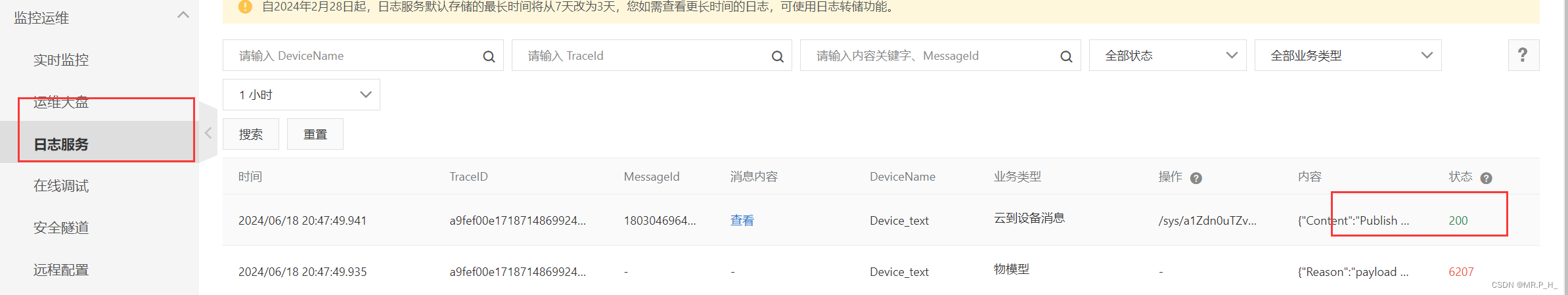 查看日志服务
