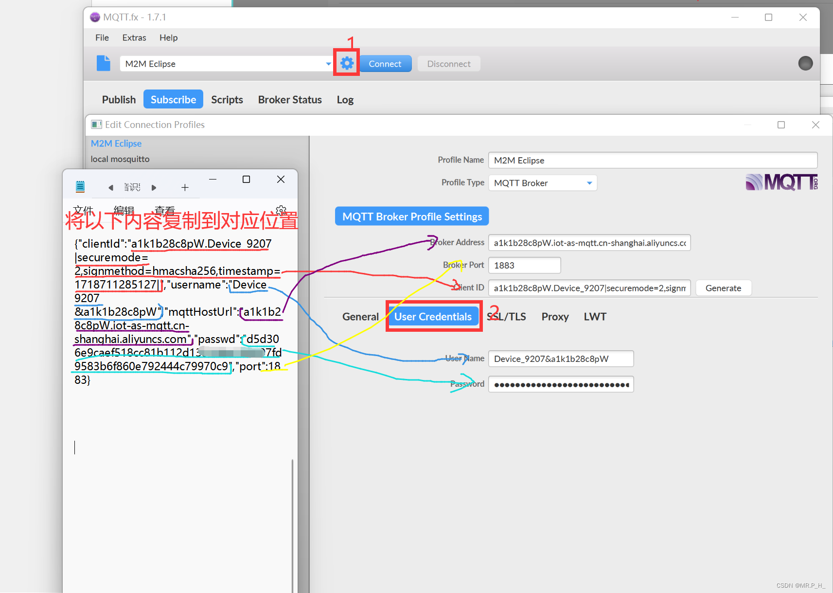 开始配置点击齿轮,选择user credentials复制对应内容后,点击下方的OK。
