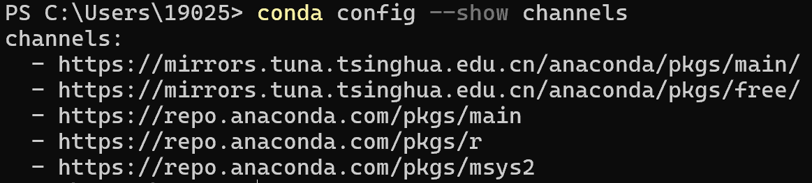 这应该只显示官方源,如 https://repo.anaconda.com/pkgs/main 和 https://repo.anaconda.com/pkgs/r 等。