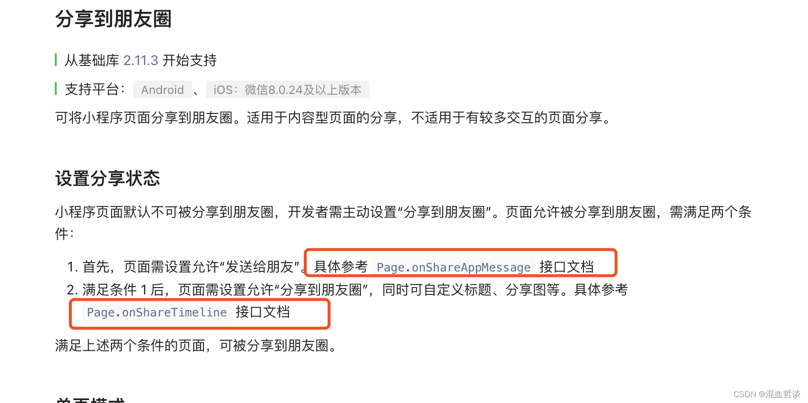 有说:使用 web-view组件的页面支持分享发送给朋友不支持分享到朋友圈