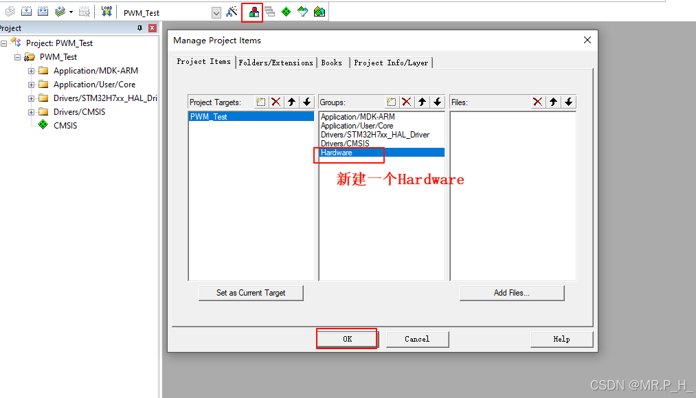 新建pwm.c和pwm.h文件,并添加到Hardware文件夹路径下!