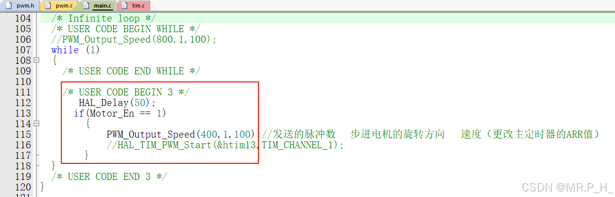 采用定时器的翻转模式,驱动电机的转动: